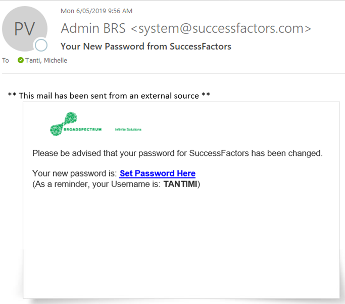 In the next few minutes you will receive an email from BRS Admin to reset your SuccessFactors password.